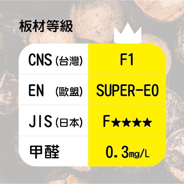 板材獨立測試,甲醛含量的認證依照等級區分 CNS 區分為F1~F3等級