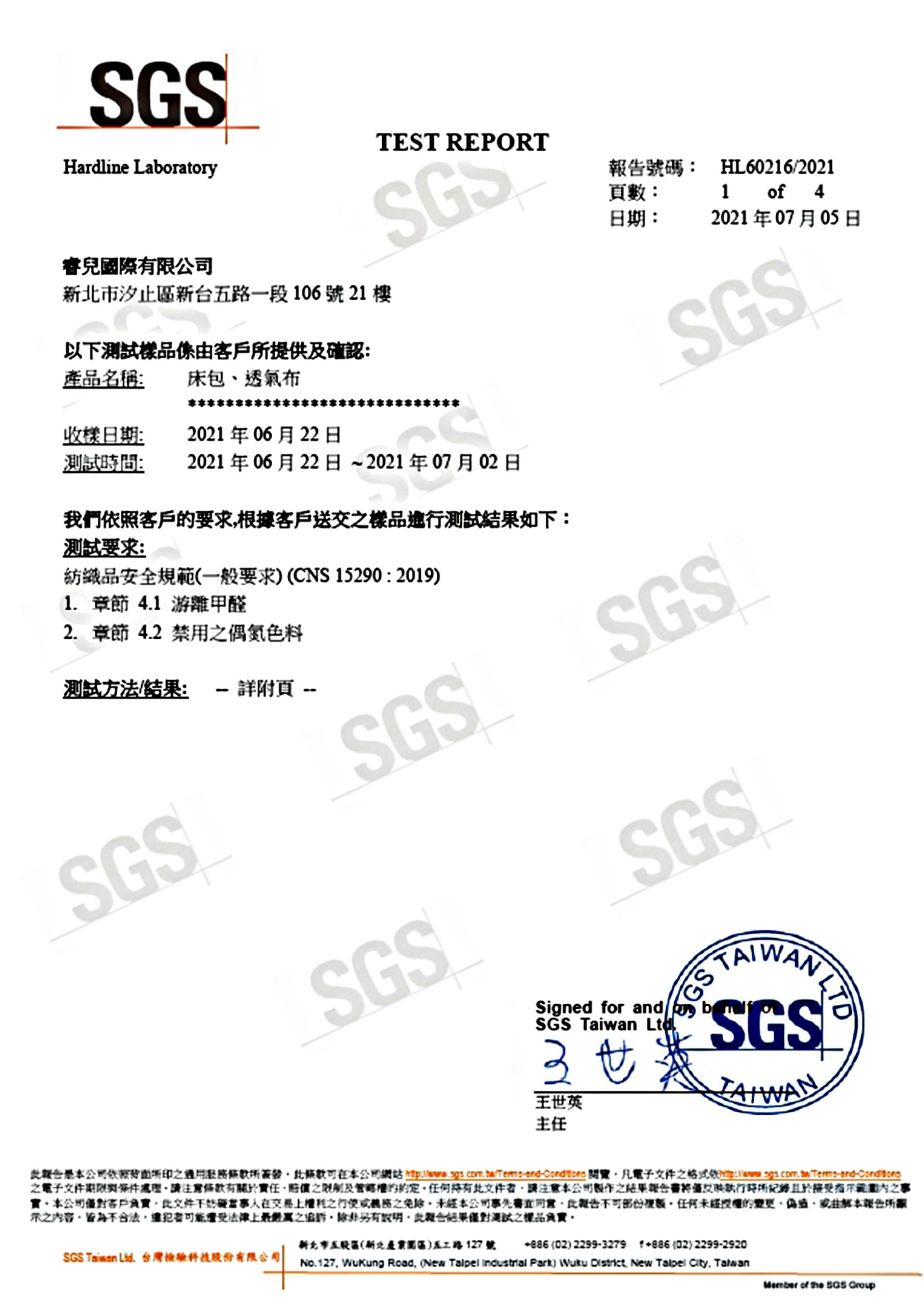 SGS 游離甲醛、偶帶色料